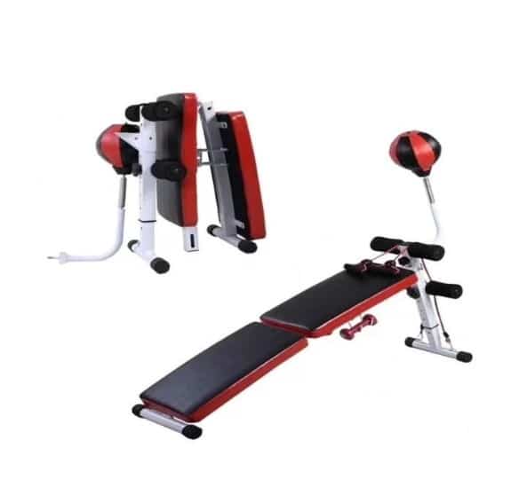 This features a Rugged, foldable Sit up bench for abdominal exercise. The Sit-up is well designed with strong material and well padded with quality foam and leather. This bench is designed with good quality materials to enable it accommodate heavy weights. up to 120kg. It is can also be adjusted to suit the user’s height. This sit-up is one of the newest inventions in the industry . The purpose is to build a simple, unique ,multifunctional abdominal equipment that can be used to perform multiple exercises while conserving storage space. with speed ball and pull ropes. Utility weight bench for full body workout, multi-purpose slant training exercise.• Weight bench with weight• Exercise bench• Weight Th.is unique bench features a speed ball , Pair of 2kg Aerobic Dumbbell and Pull-up Rope. Size – 132x118x53cm/52x46x21 inches. Load capacity: 150kg. It is Made with a durable steel frame that guarantees solid construction with contoured foam pads providing an optimal amount of support and comfort to get the most out your workout.
