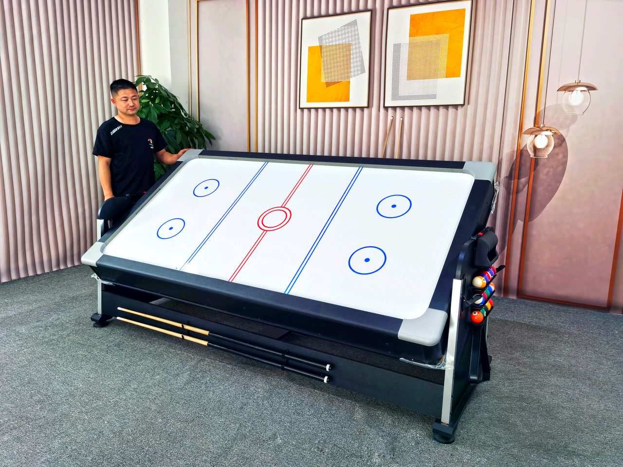 A 7 feet coin air hockey table is a full-size, arcade-style air hockey game designed for public venues like game centers, arcades, youth clubs, and also for home game rooms. The “coin” part means the table operates using coins or tokens — you insert a coin to start a game — which is ideal for places that charge per play.