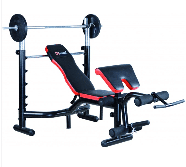 This weight bench comes with a barbell and dual disks 25kg each, deluxe pad, armcurl, butterfly and leg developer. The bearing range is 150 and it’s heavy duty equipment suitable for commercial use.