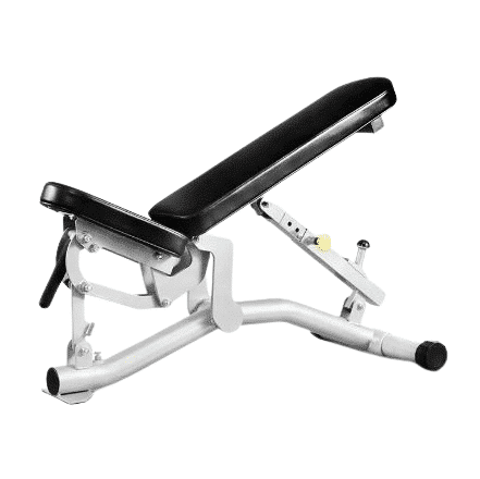 A heavy duty adjustable bench is a stable exercise bench with a reinforced frame and upholstery designed to support high weight loads and intense use, featuring a mechanism to adjust the angle for flat, incline, and decline positions to perform a wide variety of dumbbell, barbell, and bodyweight exercises.